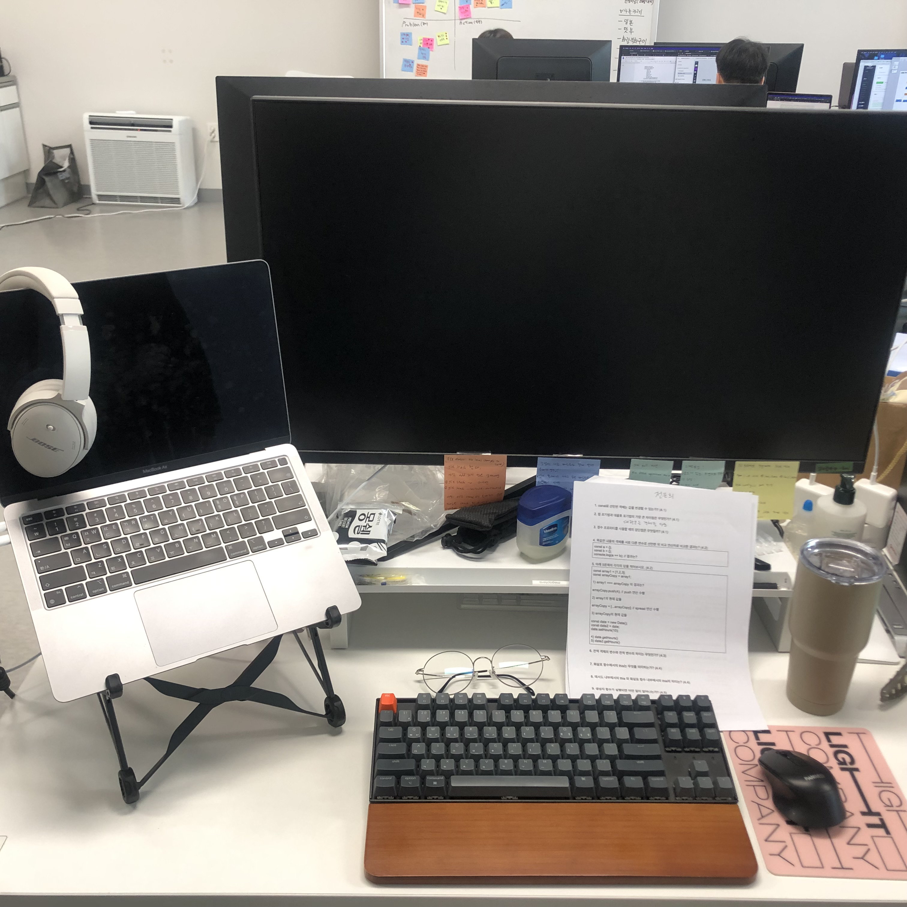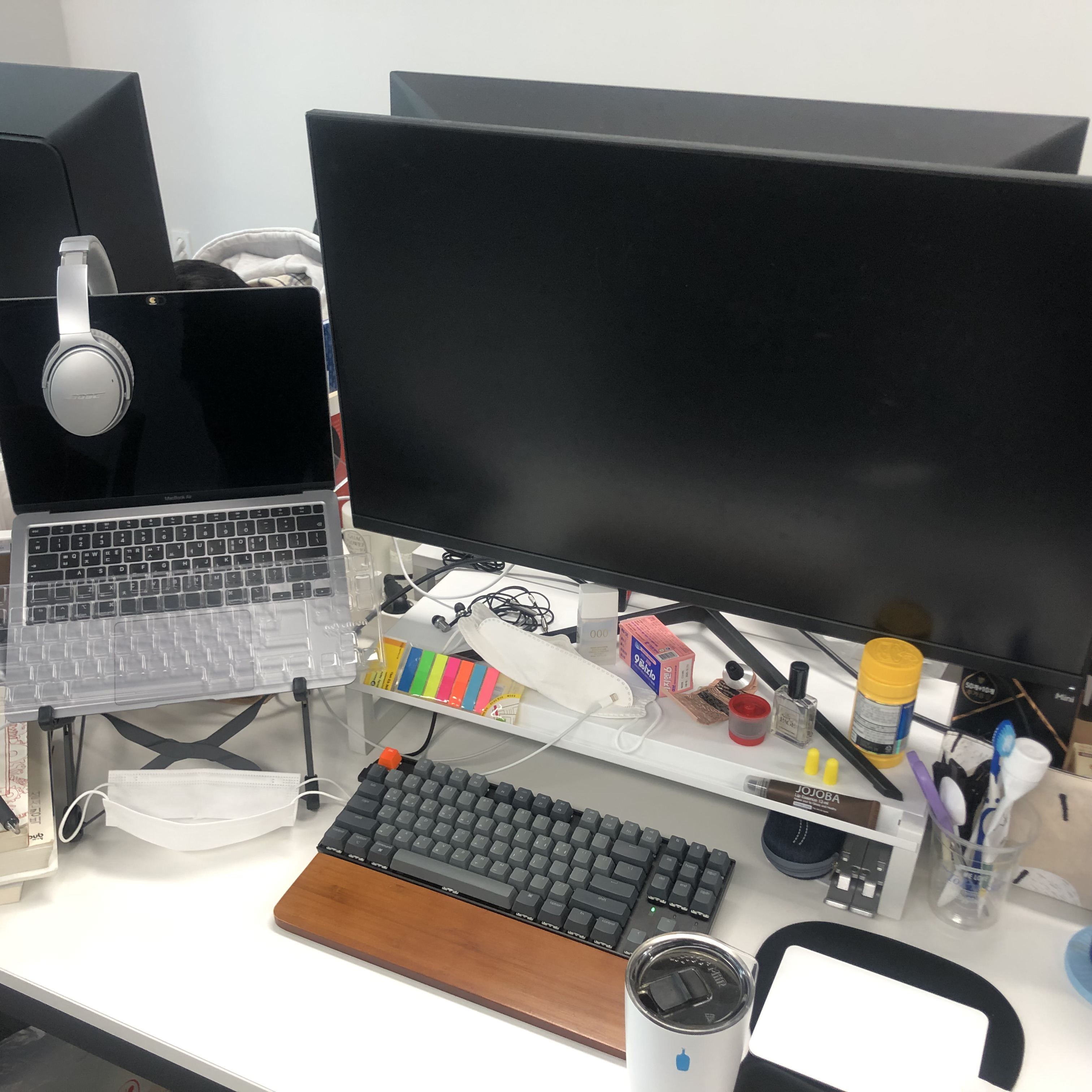 옆자리 쥬쥬가 나더러 물건 팔면 잘 팔 거 같다고 말함 ㅋㅋㅋㅋ 막 물건 들이밀면서 소비 조장하지 않았는데도... 뚜루님이랑 제나님은 거의 내가 산 물건 다 똑같이 삼ㅋㅋㅋㅋㅋㅋㅋ 뿌듯하다.. (이게 바로 이번 주 주간 회고 제목의 이유) 보스 헤드폰... 꽤 큰 지출이었지만 두 분 다 만족하고 계셔서 제가 다 기쁘네요..^^👍🏻