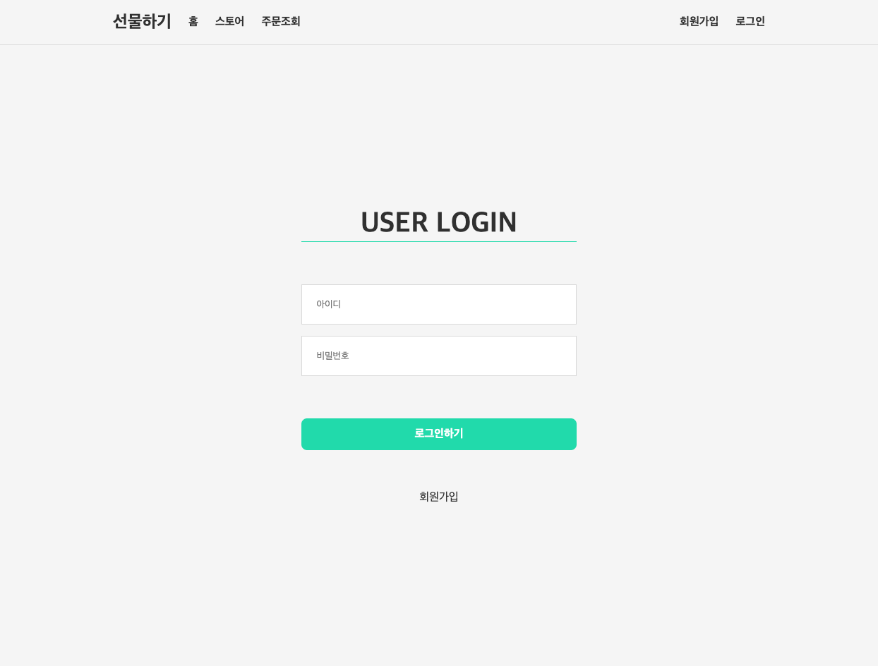회원가입 성공 시 출력되는 페이지 오늘의 작업 목표는 로그인, 회원가입을 구현하고, 하다 말았던 상품 주문 페이지를 구현하는 것이었다. 우선 로그인, 회원가입은 기능 구현을 완료하고, 마크업까지 모두 진행하였다.