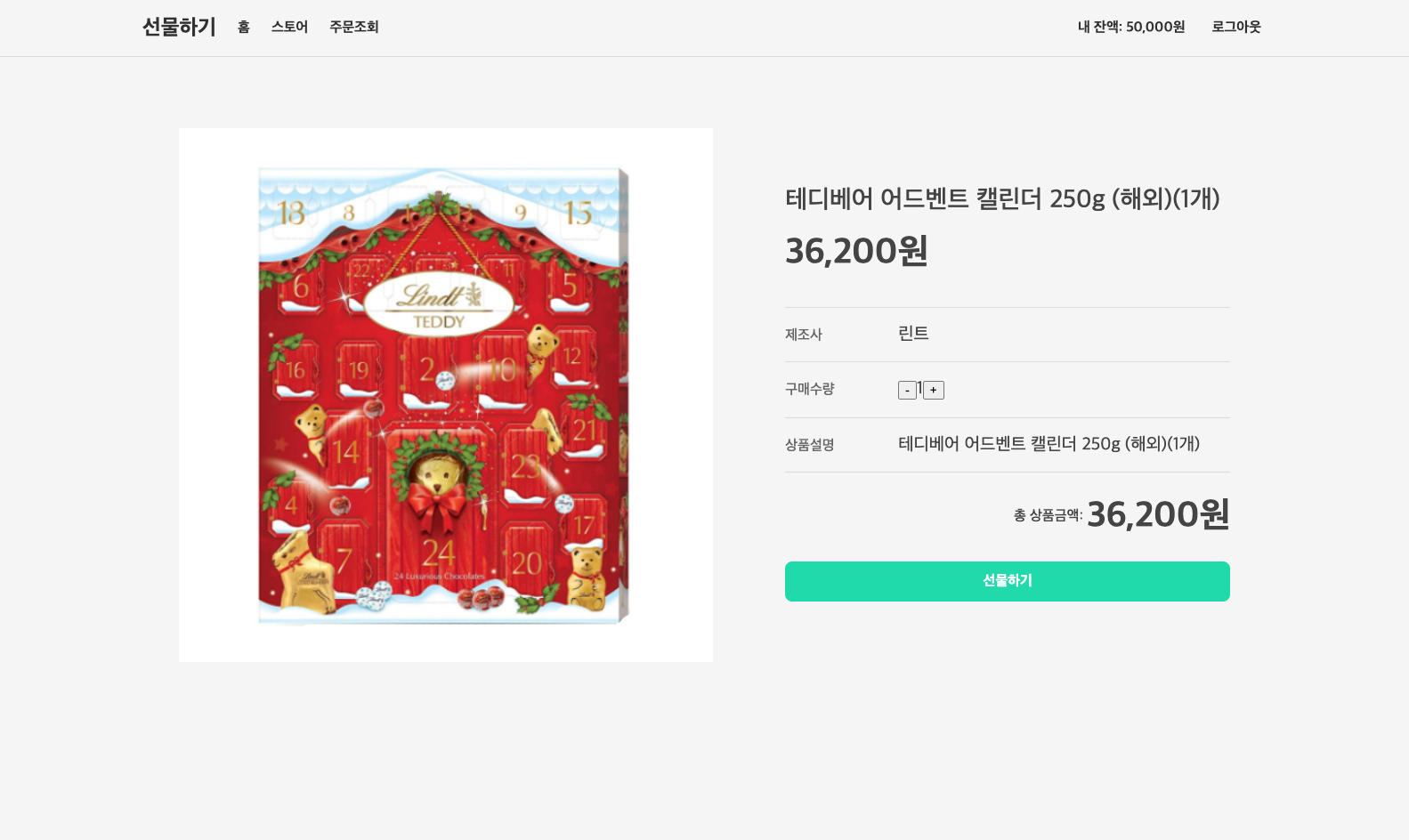 상품 주문 페이지 방금 막 클라이언트와 서버의 주문 기능을 완료하였고, 바로 주문 목록 페이지를 구현할까 하다가 그전에 상품 상세 페이지와 주문 입력 페이지 스타일링을 해야겠다 싶어 후딱 해버렸다. 근데, 구매 수량 버튼으로 플러스 아이콘과 마이너스 아이콘은 당장 중요한 부분은 아니니 마지막에 할 겸 남겨두었고..(사실 모킹하라고 하면서 테스트 깨지는 게 싫어서 제일 마지막으로 미룬 것이 가장 큰 이유이다.)