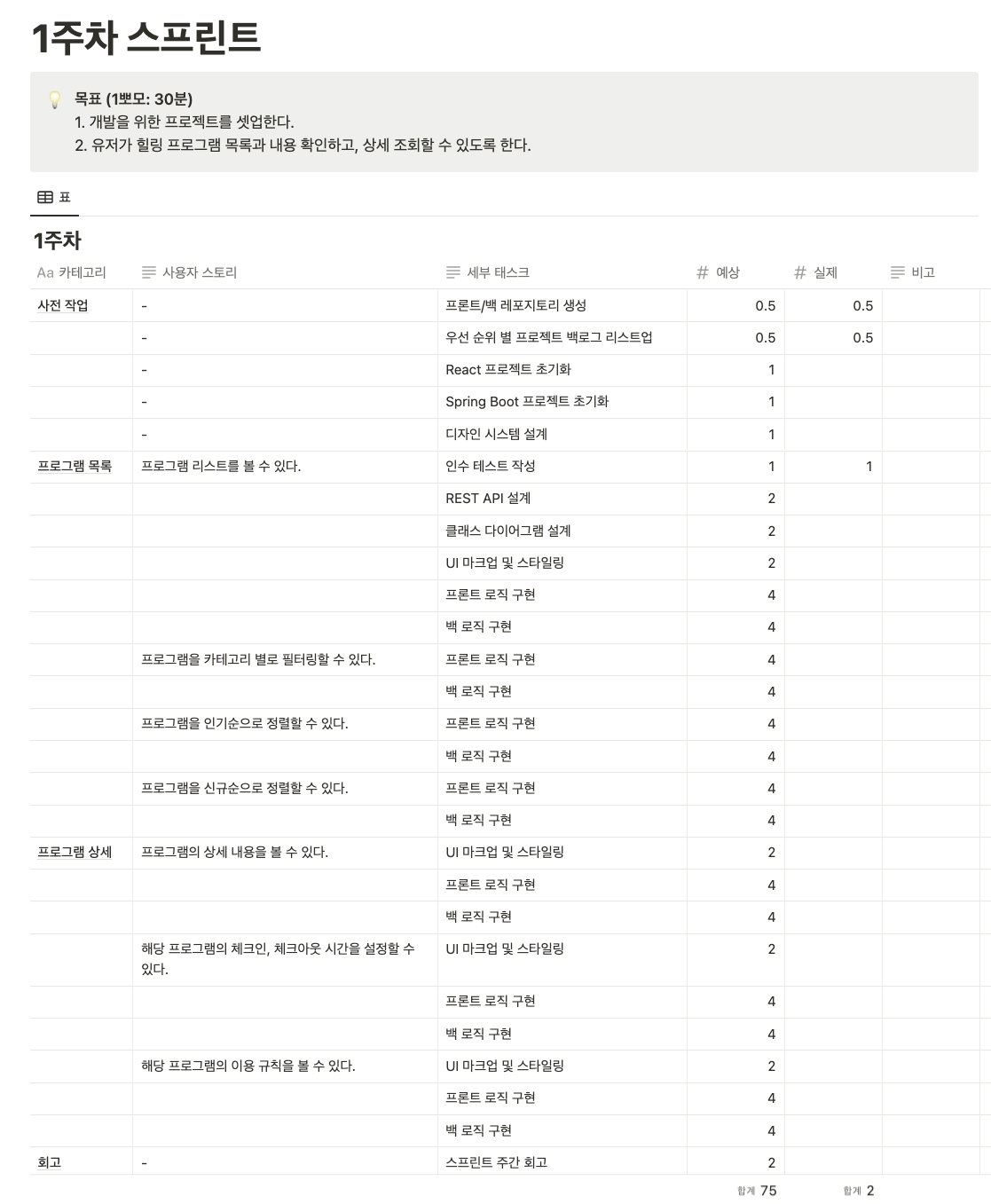 개발 1주차 스프린트 목표